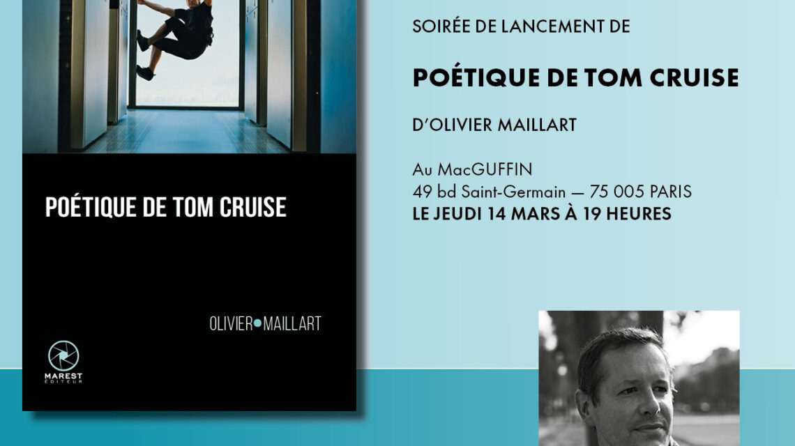 Le 14 jeudi mars 2024, soirée de lancement de Poétique de Tom Cruise d’Olivier Maillart au MacGuffin, 49 bd Saint-Germain, 75 005 PARIS