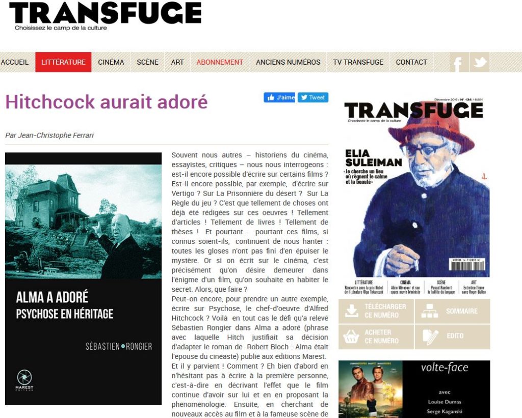 On termine la lecture de Alma a adoré avec la conviction que, par bonheur, nous n’en aurons jamais fini avec Psychose. Hitchcock aurait adoré ! L’article est en ligne sur le site de Transfuge