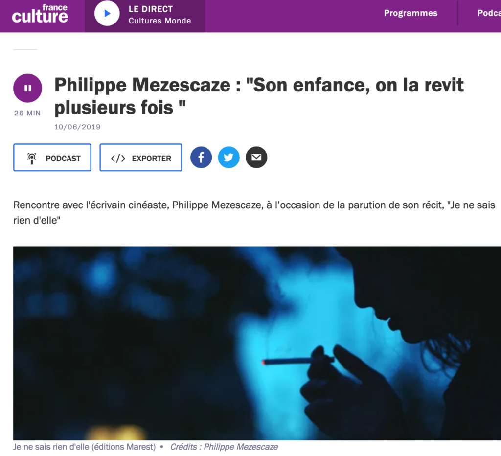 Philippe Mezescaze (« Je ne sais rien d’elle ») sur France Culture
