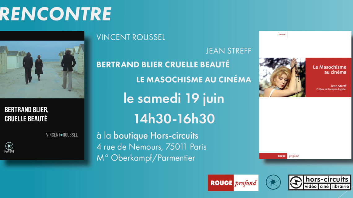 Le 19 juin 2021, lancement conjoint de Bertrand Blier, cruelle beauté de Vincent Roussel et de Le Masochisme au cinéma de Jean Streff (Rouge Profond) à la boutique Hors-Circuits, 4 rue de Nemours, 75 011 PARIS.