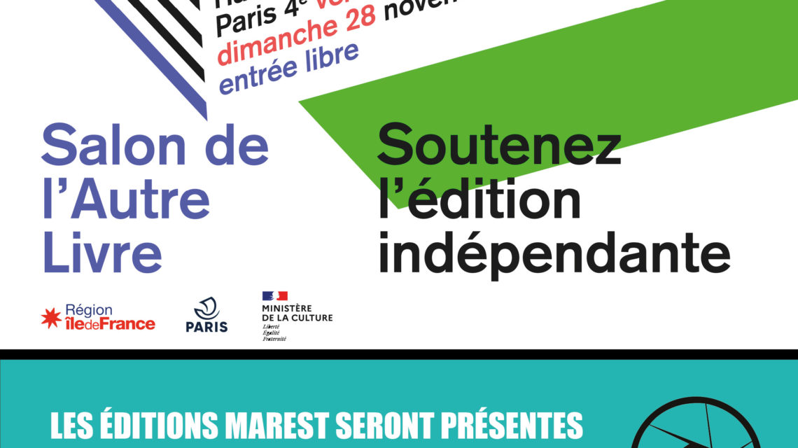 Du vendredi 26 novembre 14h au dimanche 28 novembre 19h, les éditions Marest seront présentes, stand D28, au Salon de l’Autre Livre, Halles des Blancs Manteaux, 48 rue Vieille du Temps, Paris 4e.